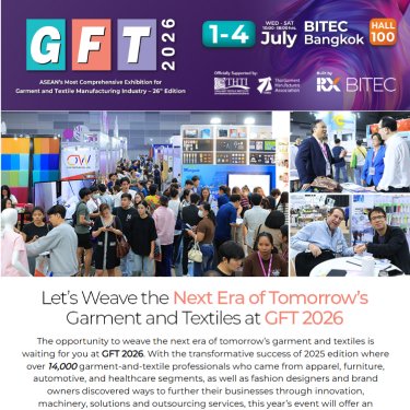 Expand your production lines with numerous new technologies, bring your brand and designs to life with quality manufacturers in My Style zone, get hands-on experience at Workshops in GFT Inspire activity, discover functional fabrics in Functional Textile zone, and celebrate Thai textiles at Soft Power & Sustainability Showcase.